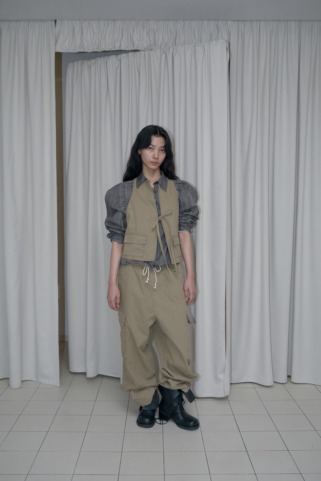2-3일이내 발송 되는 상품입니다. 스터드 디테일로 완성된 조끼입니다. 단품으로도 착용할 수 있어 높은 활용도를 자랑하며, 넉넉한 암홀 라인 덕분에 다양한 이너와 자연스럽게 레이어드할 수 있습니다. 가을·겨울 시즌에는 심플한 니트나 가벼운 아우터 위에 걸쳐 스타일에 변주를 주기 좋습니다. 동일한 소재의 팬츠와 매치하면 완성도 있는 셋업 룩이 연출되며, 단독으로 착용할 경우에도 유니크하고 감각적인 실루엣을 살릴 수 있는 아이템입니다. 스터드 장식으로 포인트를 주어 클래식한 룩에 개성을 더했습니다. ● Materials: Cotton 100% ● 제품컷이 실제 색상과 가장 흡사합니다.
